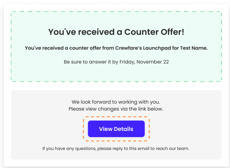 At this point, the hotel can either accept the bid or counter-bid. In both cases, you will receive an email notification, and a notification through the platform, as shown below: